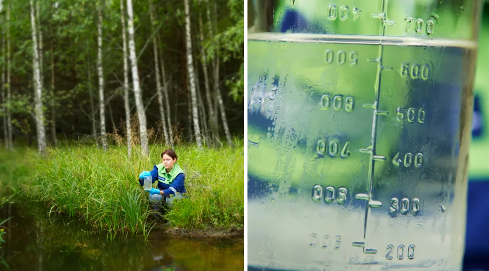 Neste’s environmental department conducting surface water sampling from a natural creek in the near proximity of the Porvoo refinery.