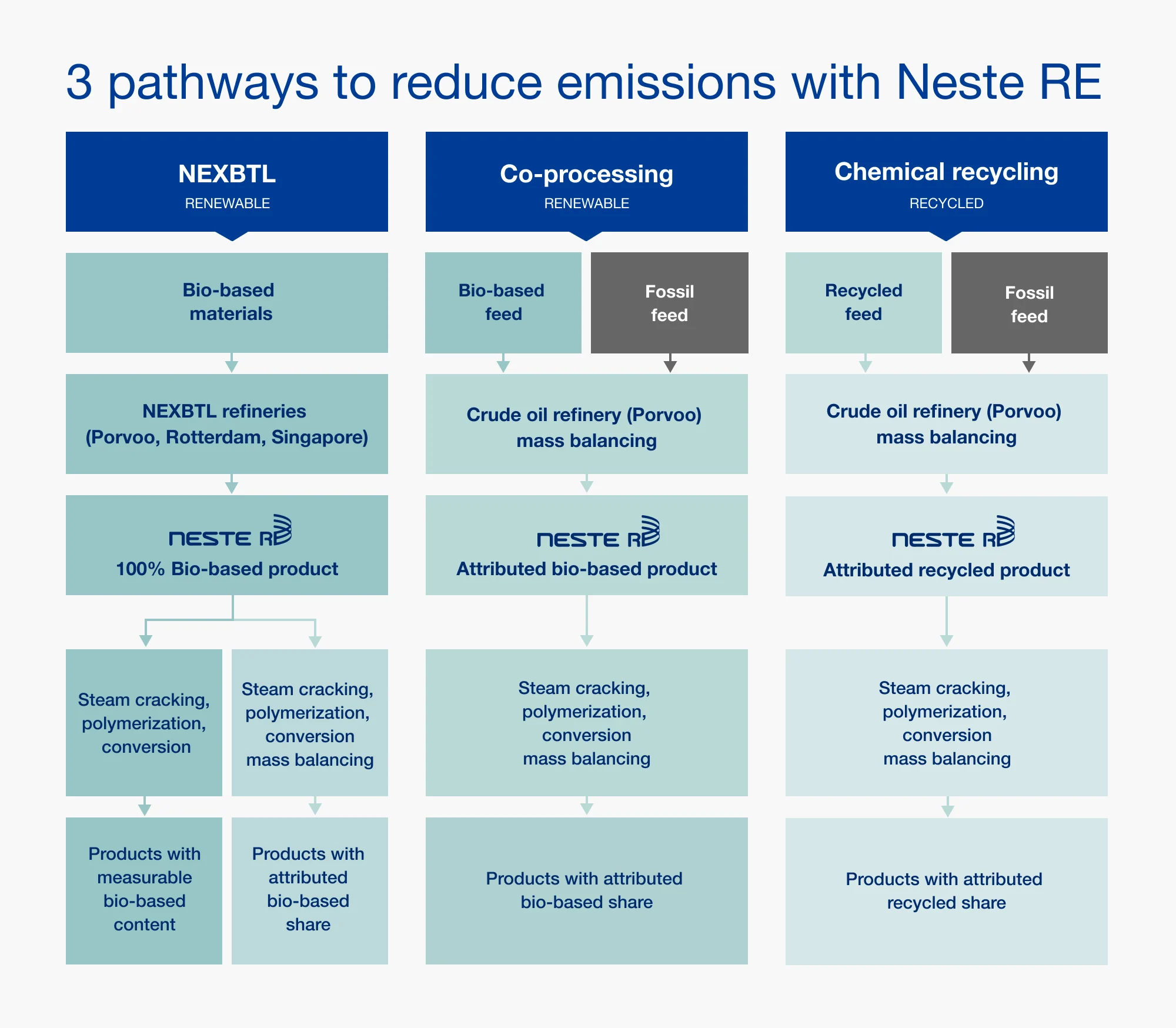 We can offer two ways to produce Neste RE using bio-based raw materials: