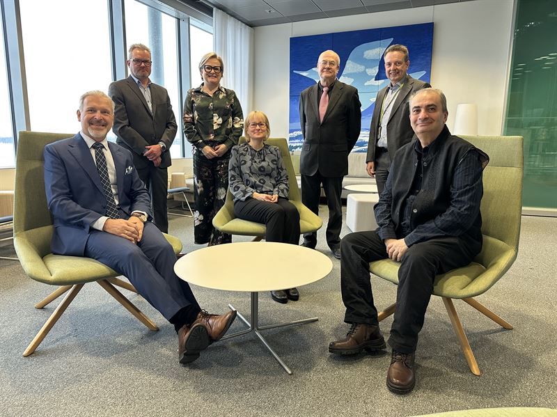 Kuva: Lahjoitustilaisuus tarjosi yliopistojen tutkimusryhmien vetäjille, professoreille Karoliina Honkala, Dmitry Murzin, Tapio Salmi ja Mika Suvanto, mahdollisuuden keskustella osaamisen kehittämisen ja katalyysitutkimuksen edistämismahdollisuuksista. Kuvassa vasemmalta Lars Peter Lindfors, Nesteen teknologia- ja innovaatiojohtaja; Mika Suvanto, Itä-Suomen yliopiston kemian ja kestävän teknologian laitoksen johtaja, professori; Teija Laitinen, Nesteen Manager R&D Partnerships; Karoliina Honkala, Jyväskylän yliopiston kemian professori; Tapio Salmi, Åbo Akademin kemiallisen reaktiotekniikan professori; Petri Lehmus, Nesteen Vice President, Research & Development; ja Dmitry Murzin, Åbo Akademin kemiallisen teknologian professori. Lähde: Neste