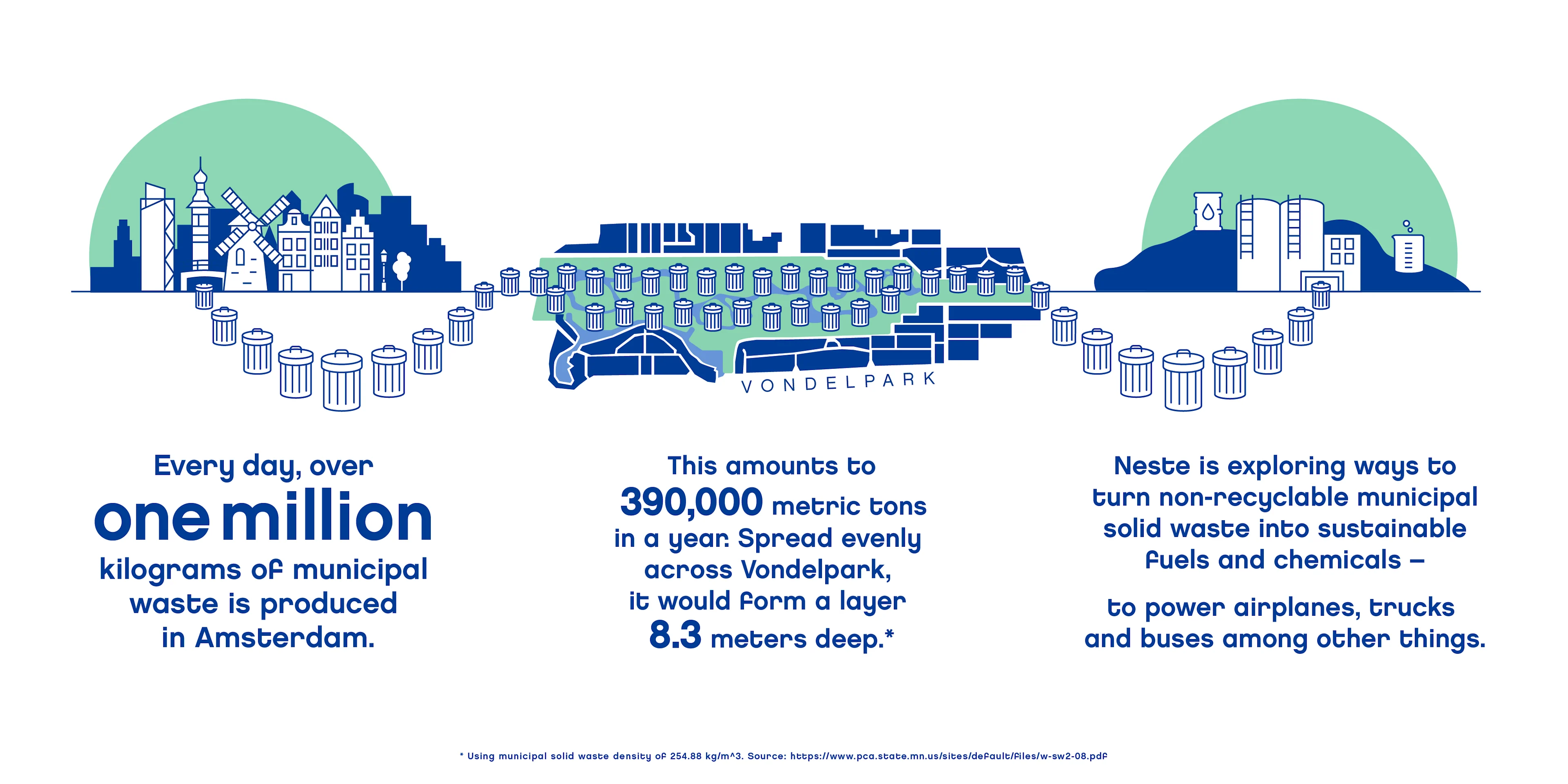 Neste helps make cities more sustainable, providing renewable and circular solutions to businesses in the transport, aviation and plastics sectors. Read more about how waste and residues, such as used cooking oil, are used as raw materials for renewable products. Neste is also exploring the raw material potential of, for example, recycled waste plastics and municipal solid waste.