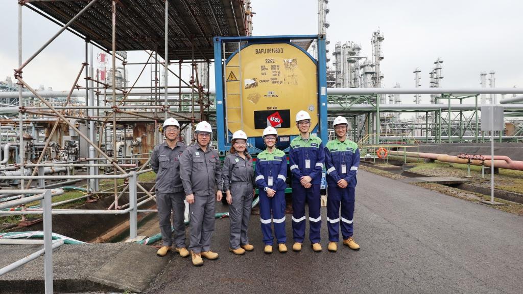 Photo: Neste and PCS colleagues upon arrival of a delivery of Neste RE at PCS’ site on Jurong Island. Source: PCS.
