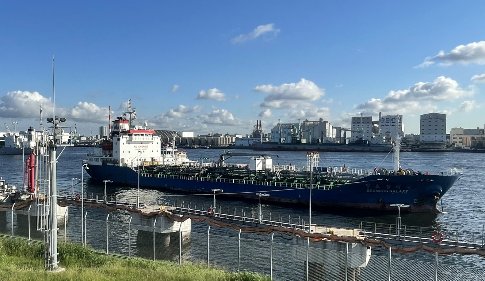 Photo: The ship delivering the blended CORSIA-certified SAF at Chiba port in Japan. Source: ITOCHU