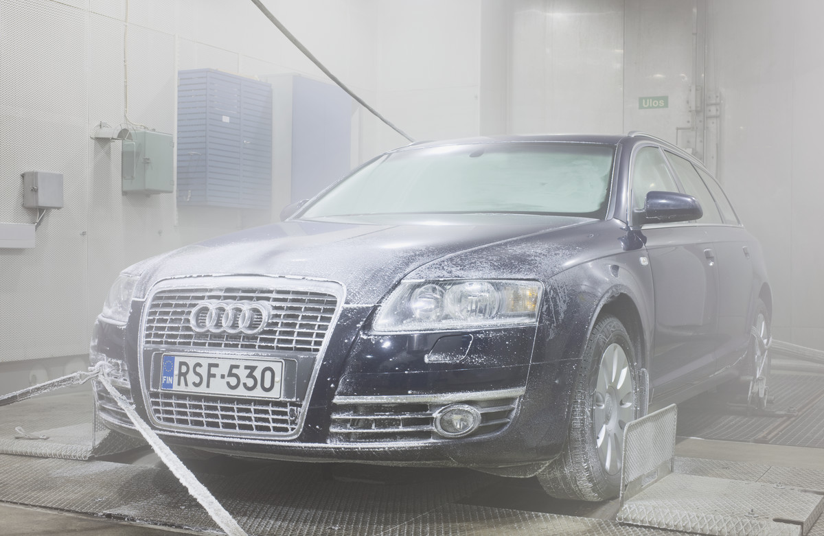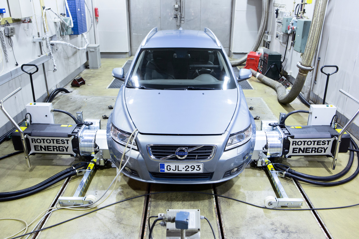 One important tool is the dynamometer room where a car can be driven in place under varying conditions. Temperature can be adjusted from a sub zero -35 degrees to a heat of +40 degrees centigrade. Air humidity can also be varied, and the speed of the car and the airflow can be raised to 250 kilometers per hour.