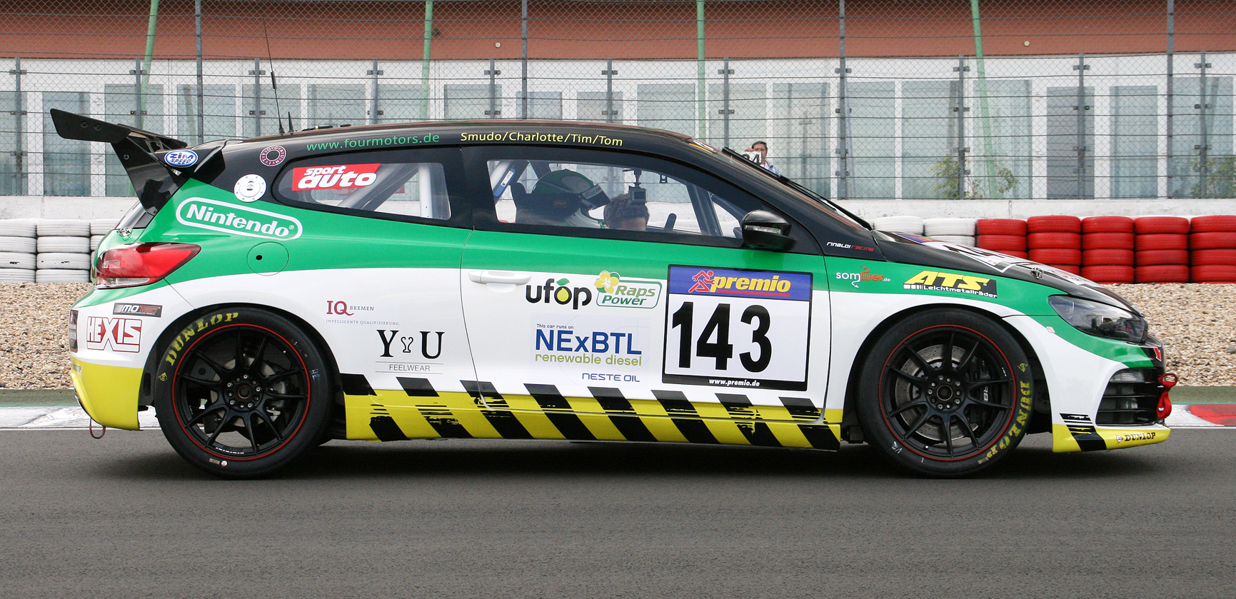The Bioconcept-Scirocco of Four Motors, one of the two teams to compete using Diesel regenerative, fulfilled the expectations by crossing the finish line on Sunday after 24 challenging racing hours. Despite some not fuel-related technical problems with the engine electronics during the first phase of the race, the team surrounding Smudo, singer of the famous German rap band Die Fantastischen Vier, proved that sustainability in racing is possible. "Through the outstanding dedication and know-how of the team as well as the support of our partners, the Union for the Promotion of Protein Plants (UFOP) and Neste Oil with its NExBTL fuel, we were able to put the idea of greener racing into effect once again", remarked Smudo after the race.