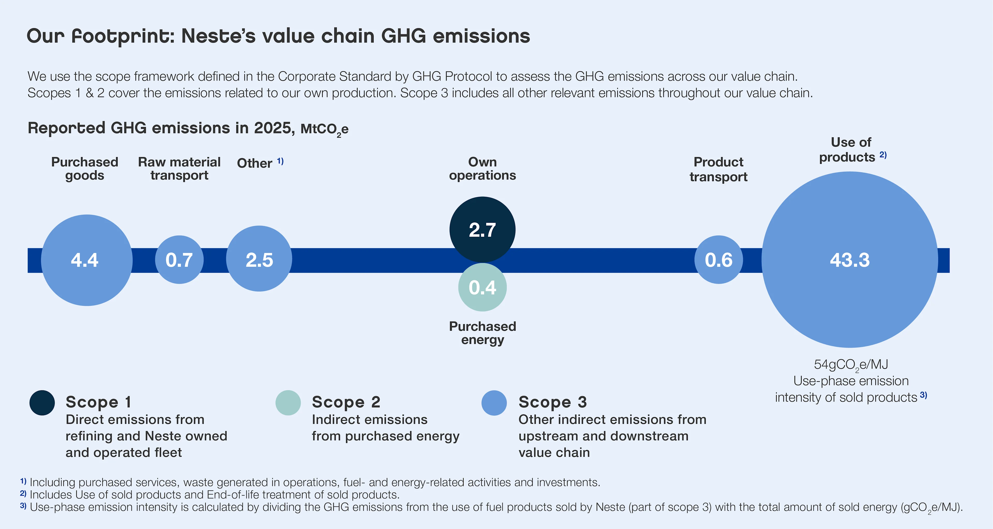 For other scope 3 areas, GHG emissions related to purchased goods, such as raw materials, purchased services, transportation and logistics are important topics for Neste’s value chain emissions. We continue to strengthen our capabilities across the organization and build our action plan for scope 3 together with our suppliers and partners.