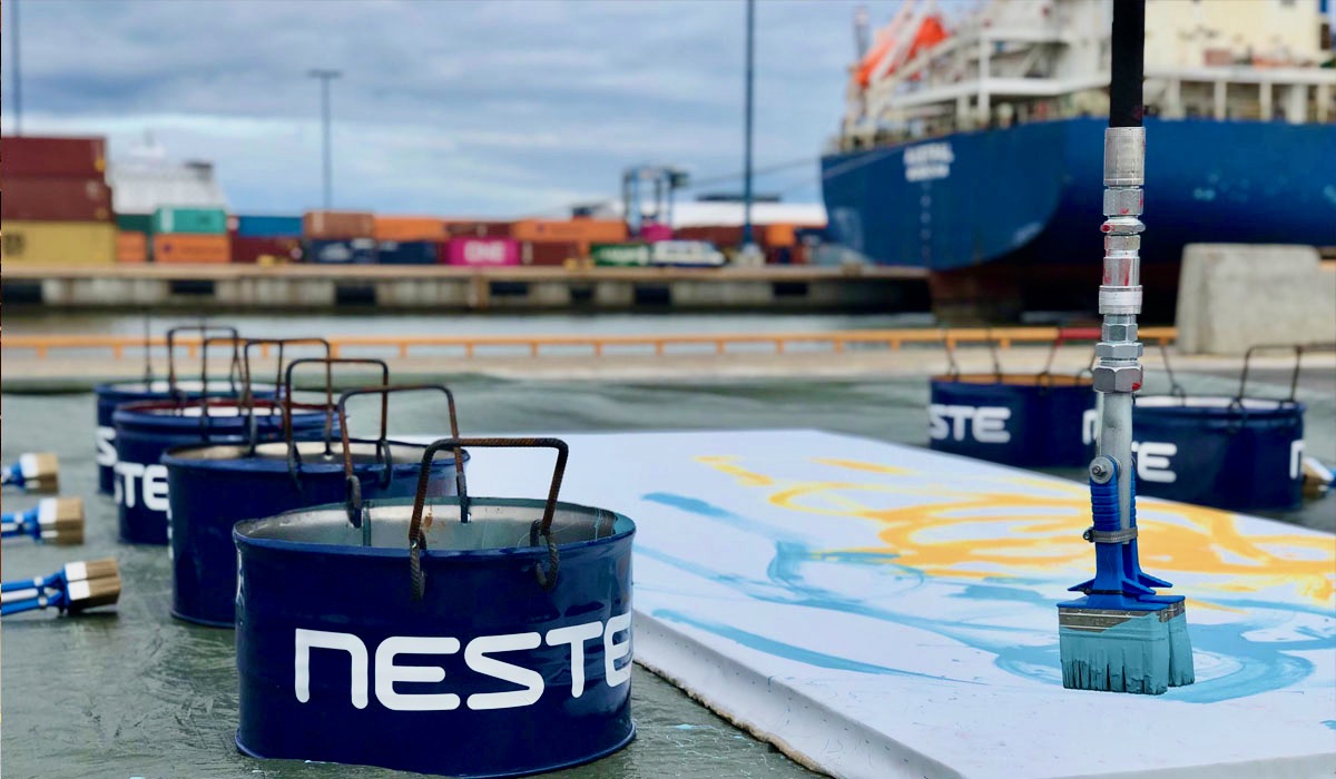 Kampanjen Zero Exclusion omfattar 42 målningar av tre unga konstnärer som de har skapat med hjälp av en hamnkran på 300 ton, som har försetts med specialkonstruerade penslar. Den Neste MY Förnybar Isoalkanbaserade färgen, som har utvecklats för kampanjen av det globala färgföretaget Teknos, användes för första gången i några av målningarna.